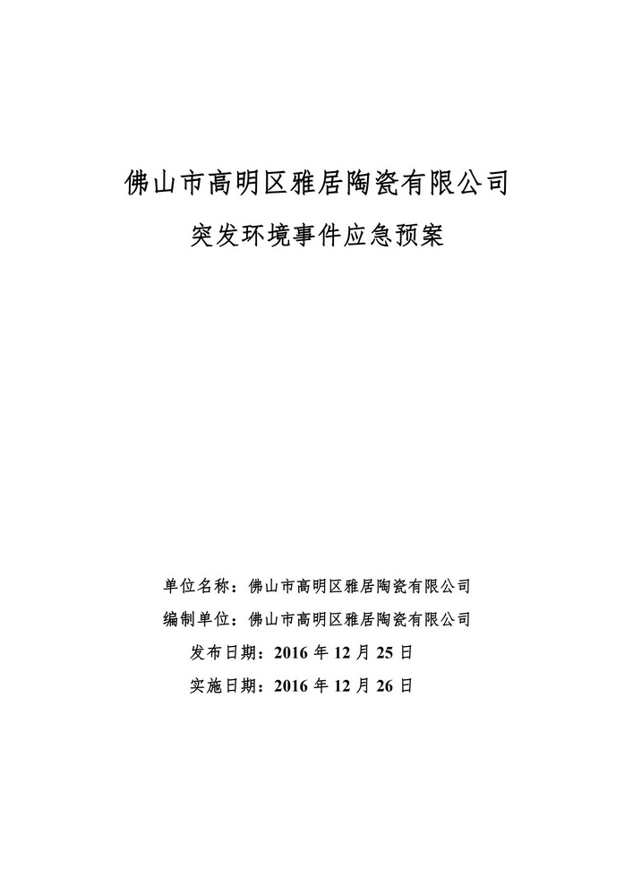 (12.29)雅居陶瓷公司环境预案